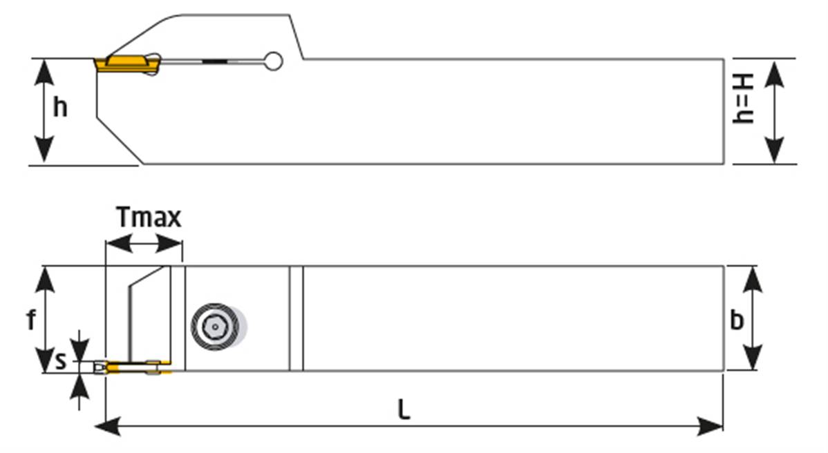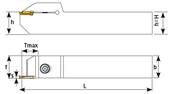 Porte outil de tronçonnage 2525 3C-R GRP Grooving Holder Plaquettes GRP 3C ISCR - H 25 - b 25 - S 3 - Tmax 18 - f 25 - L 150
