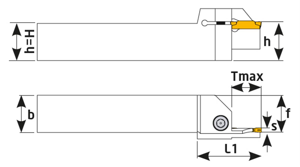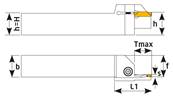 Porte outil de tronçonnage 2525 4C-L (140-600) Grooving Holder Plaquettes MGM 400 KRLY - Tmax 25 - H 25 - Dmin 140 - Dmax 600 - S 4 - f 25 - b 25 - L 150 - L1 49