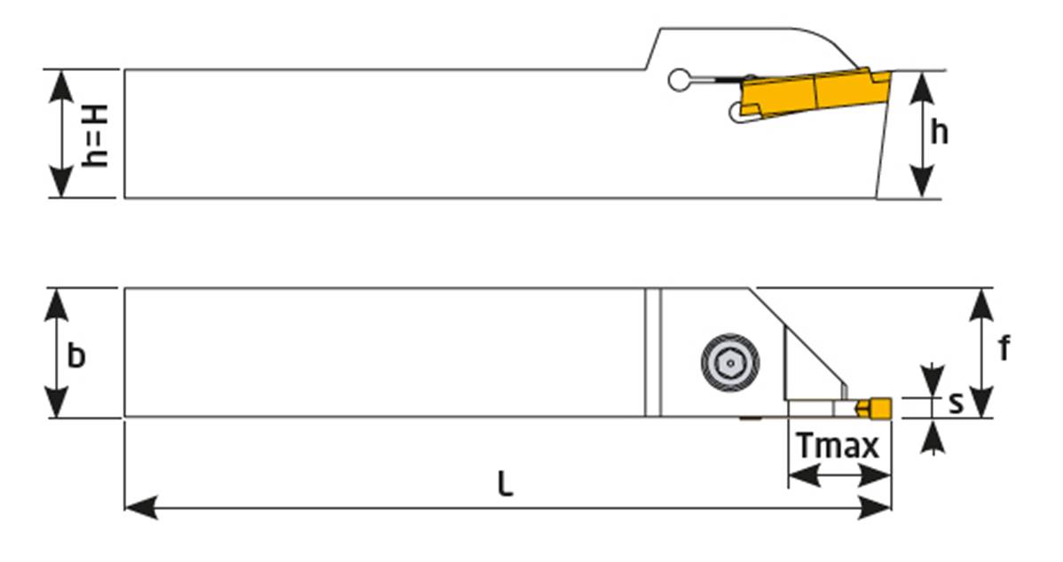 Porte outil de tronçonnage 2525 4C-L S229 Grooving Holder Plaquettes 4C S229 B-HRN - H 25 - b 25 - S 4 - Tmax 22 - f 25 - L 150