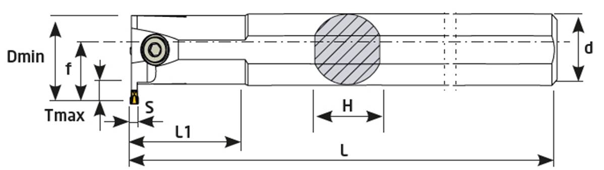 Porte outil de tronçonnage S20M 3C KGMN Grooving Holder Plaquettes KGMN 300 KRLY - Dmin 25 - Tmax 6,5 - L 150 - L1 45 - d 20 - h 18 - f 15,5 - s 3