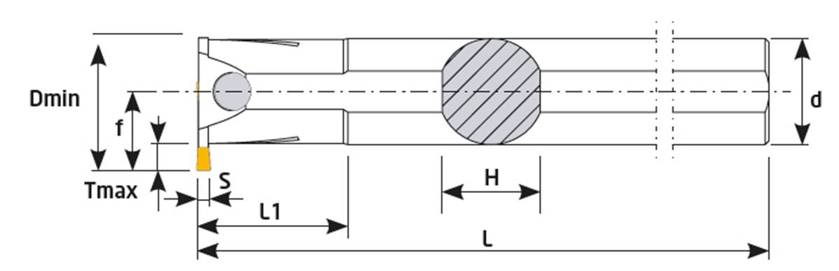 Porte outil de tronçonnage S20Q 2C-R MGM Grooving Holder Plaquettes MGM 200 KRLY - Dmin 26 - Tmax 5,7 - L 180 - L1 35 - d 20 - h 18 - f 15.5 - s 2