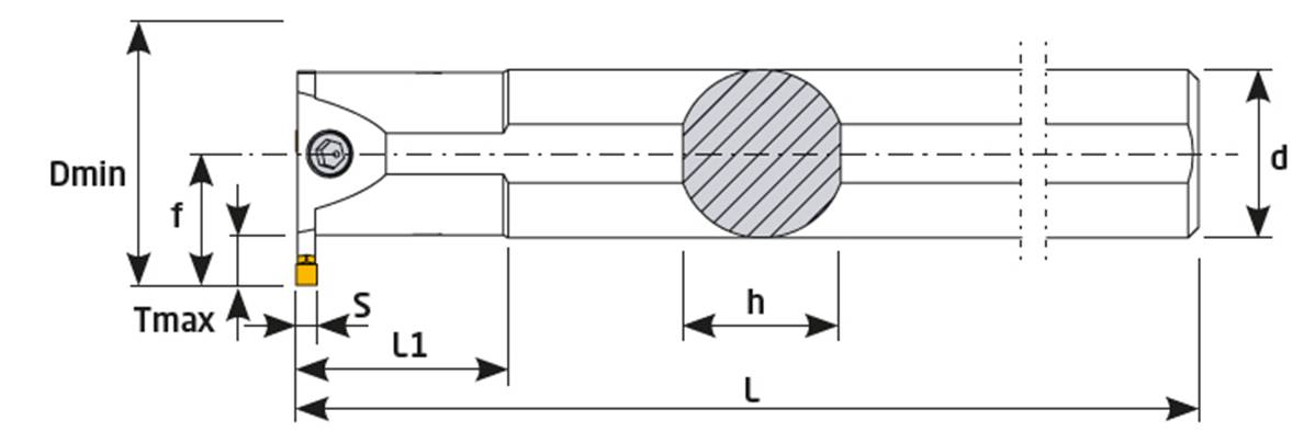 Porte outil de tronçonnage S32S 5C-R-123 SDV Grooving Holder Plaquettes 123 5C SNDVK - Dmin 39 - Tmax 7 - L 250 - L1 60 - d 32 - h 30 - f 22,7 - s 5