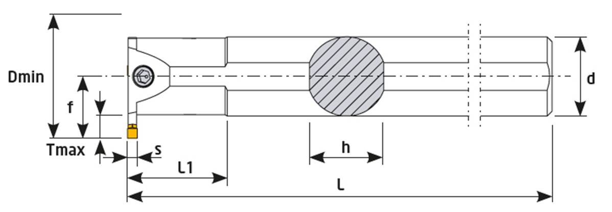 Porte outil de tronçonnage S32S 5C-R S229 Grooving Holder Plaquettes 5C S229 B.HRN - Dmin 41 - Tmax 9 - L 250 - L1 50 - d 32 - h 30 - f 24,7 - s 5