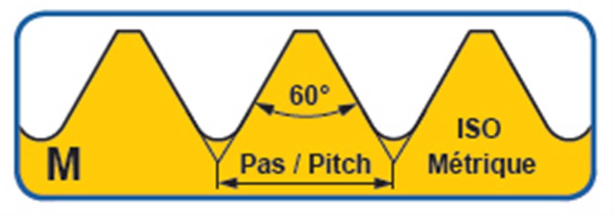 Taraud machine Co5 Bague jaune Filetage métrique ISO DIN 13 Forme C hélice 40°