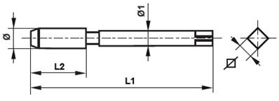 Taraud machine HSS-E(Co5%) Bague couleur verte Filetage métrique ISO DIN 13 Forme C hélice 39° DIN 376 M 20mm x 2.50mm Tol. ISO2/6H L1: 140mm L2: 25mm Ø1: 16mm Carré: 12mm
