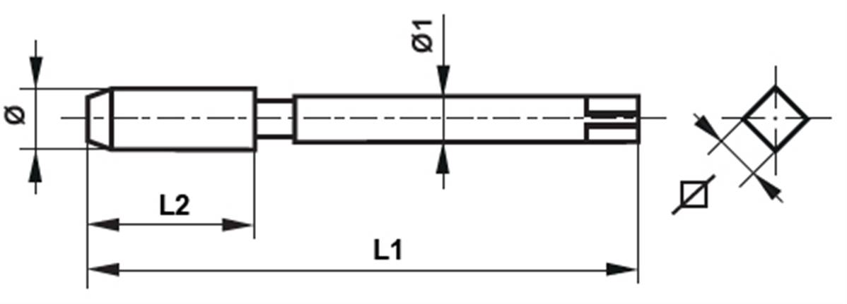 Taraud machine HSS-E(Co5%) DIN 5156 filetage gaz DIN ISO 228 Forme C hélice 35° G(BSP) 5/8 x 14filets/pouce L1: 125mm L2: 25mm Ø: 18mm Carré: 14.5mm
