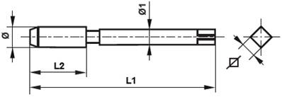 Taraud machine HSS-E(Co5%) filetage cycle DIN 79012 Forme C DIN 374 FG 2.3 x 56filet/pouce Tol. medium L1: 45mm L2: 8mm Ø1: 2.8mm Carré: 2.1mm