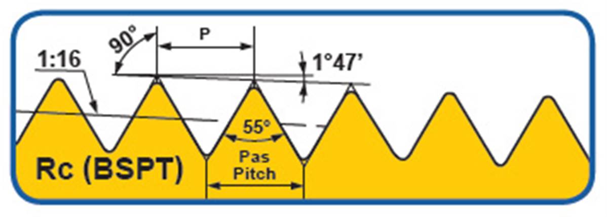 Taraud machine Co5 filetage gaz conique conicité 1:16 DIN 5156 Forme C Rc(BSPT)
