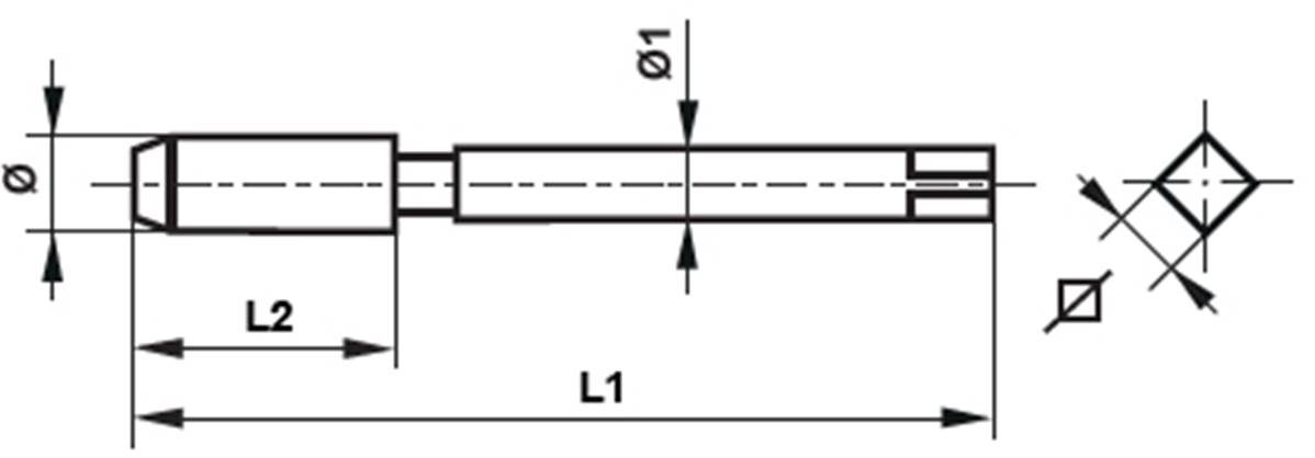 Taraud machine HSS-E(Co5%) filetage gaz conique conicité 1:16 DIN 5156 Forme C Rc(BSPT) 1/8 x 28filets/pouce L1: 90mm L2: 20mm Ø1: 7.0mm Carré: 5.5mm