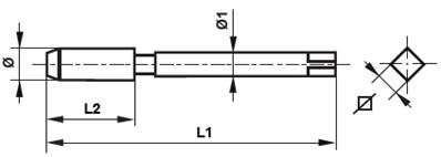 Taraud machine HSS-E(Co5%) filetage gaz DIN ISO 228 Coupe à gauche Forme C DIN 5156 G(BSP) 5/8 x 14filets/pouce L1: 125mm L2: 25mm Ø1: 18mm Carré: 14.5mm