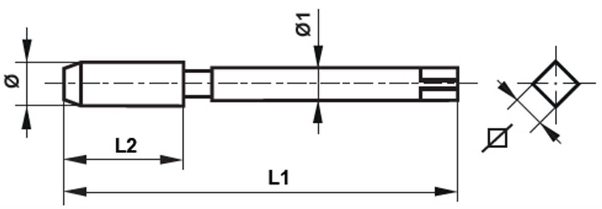 Taraud machine HGSS-E(Co5%) hélicoïdal majoré 6G filetage métrique ISO DIN 13 Forme C hélice 35° DIN 376 M 16mm x 2.00mm L1 :110mm L2: 22mm Ø1: 12mm Carré: 9mm