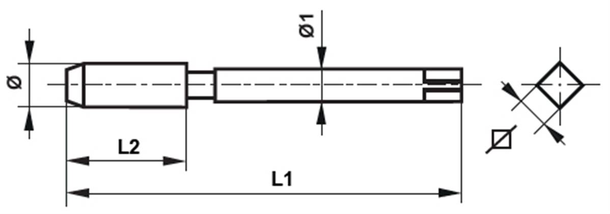 Taraud machine HSS-E(Co5%) filetage métrique ISO DIN 13 Forme A DIN 376 M 16mm x 2.00mm Tol. ISO2/6H L1: 110mm L2: 32mm Ø1: 12mm Carré: 9mm