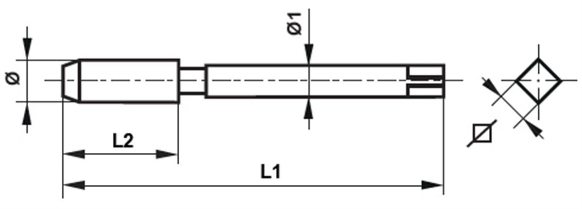 Taraud machine HSS-E(Co5%) minoré - 4H filetage métrique ISO DIN 13 Forme B entrée GUN DIN 376 M 16mm x 2.00mm Tol. ISO1/4H L1: 110mm L2: 32mm Ø1: 12mm Carré: mm