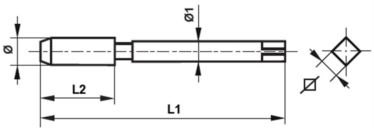 Taraud machine HSS-E(Nitr) 'surface traitée par nitruration' Co5% Bague couleur noire Filetage métrique ISO DIN 13 Forme C DIN 376 M 12mm x 1.75mm Tol. ISO2/6H L1: 110mm L2: 29mm Ø1: 9mm Carré:7mm