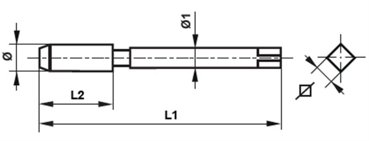 Taraud machine HSS-E(Co5%) filetage NPT Conicité 1:16 Forme C NPT 1" x 11.5filets/pouce L1: 160mm L2: 38mm Ø1: 25mm Carré: 20mm