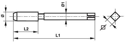 Taraud machine HSS-E(Co5%) + TiCN Bague couleur bleue Filetage métrique ISO DIN 13 Forme B entrée GUN DIN 371 M 8mm x 1.25mm Tol. ISO2/6H L1: 90mm L2: 22mm Ø1: 8mm Carré: 6.2mm