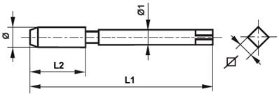 Taraud machine HSS-E(Co5%) + TiCN Bague couleur bleue Filetage métrique ISO DIN 13 Forme C hélice 39° DIN 371 M 5mm x 0.80mm Tol. ISO2/6H L1: 70mm L2: 8mm Ø1: 6mm Carré: 4.9mm