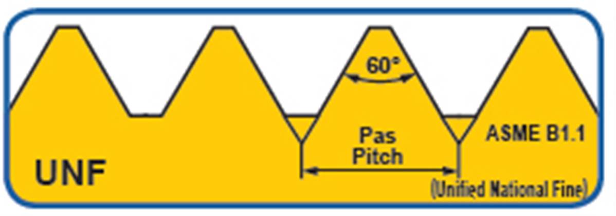 Taraud machine HSS-E(Co5%) filetage unifié pas fin ANSI B 1.1 Forme C hélice 35° DIN 376 UNF 1" x 12filets/pouce Tol. 2B