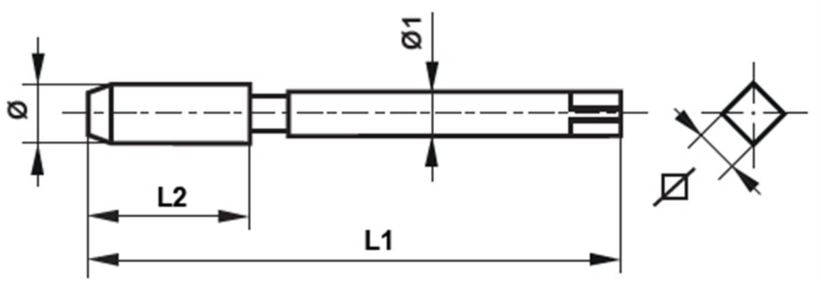 Taraud machine HSS-E(Co5%) filetage unifié pas fin ANSI B 1.1 Forme C hélice 35° DIN 376 UNF 1" x 12filets/pouce Tol. 2B L1: 150mm L2: 28mm Ø1: 20mm Carré: 16mm