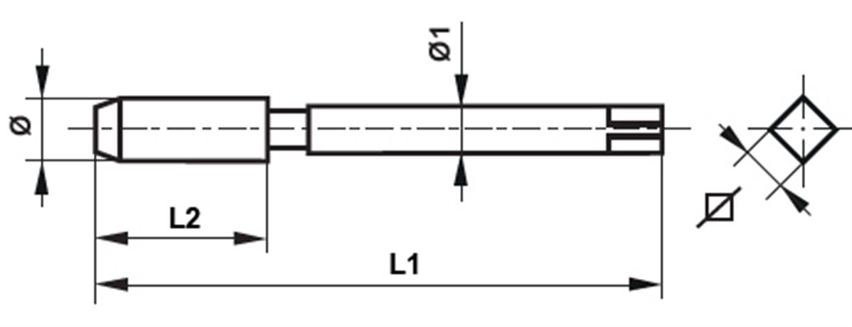 Taraud machine HSS-E(VAPO) Co5% filetage métrique ISO DIN 13 Forme B entrée GUN DIN 376 M 14mm x 2.00mm Tol. ISO2/6H L1: 110mm L2: 30mm Ø1: 11mm Carré: 9mm