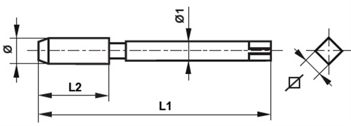 Taraud machine HSS-E(VAPO) Co5% filetage métrique ISO DIN 13 Forme C hélice 35° DIN 376 M 14mm x 2.00mm Tol. ISO2/6H L1: 110mm L2: 20mm Ø1: 11.0mm Carré: 9.0mm