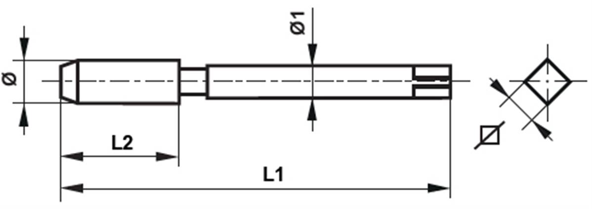 Taraud machine HSS-E(Co5%) filetage Whitworth BS 84 Forme B entrée GUN DIN 371 BSW 7/16 x 14filets/pouce L1: 100mm L2: 22 mm Ø1: 11mm Carré: 9mm