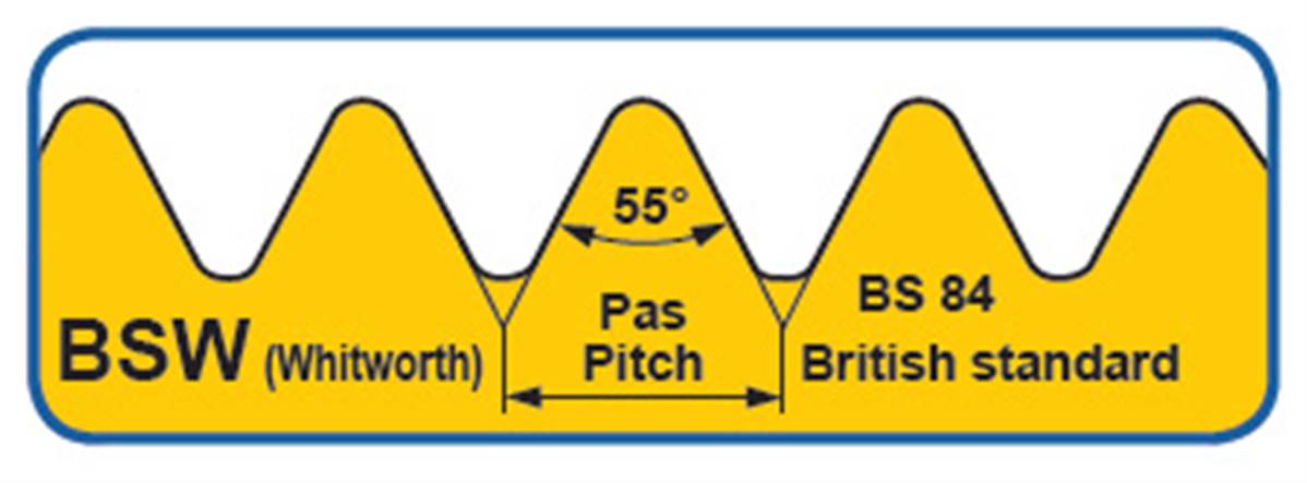 Taraud machine HSS-E(Co5%) filetage Whitworth BS 84 Forme B entrée GUN DIN 371 BSW 7/16 x 14filets/pouce
