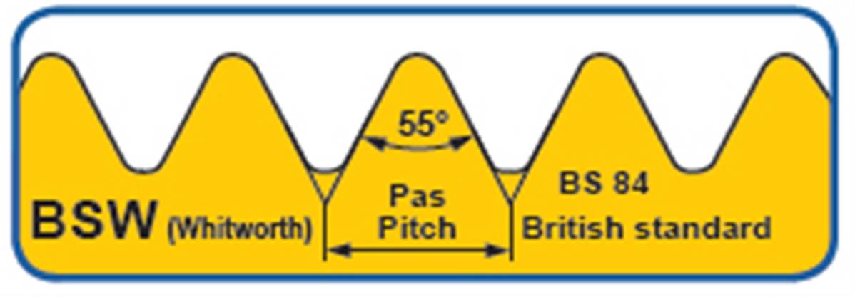 Taraud machine HSS-E(Co5%) filetage Whitworth BS 84 Forme B entrée GUN DIN 376 BSW 9/16 x 12filets/pouce
