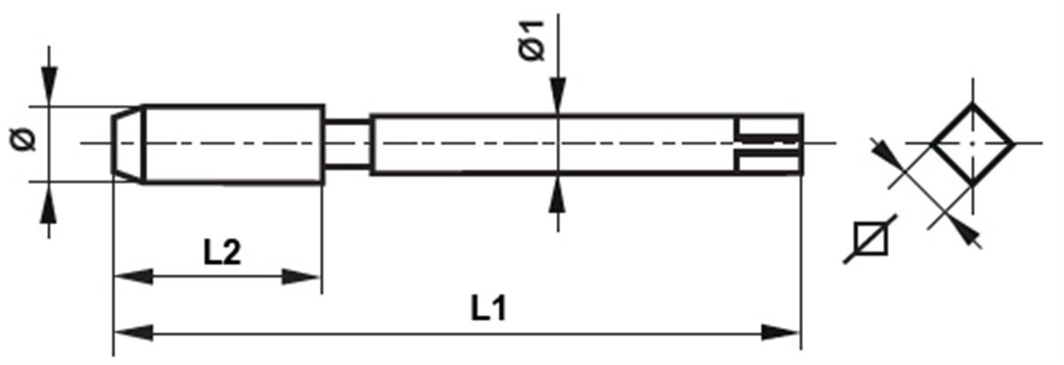 Taraud machine HSS-E(Co5%) filetage Whitworth BS 84 Forme B entrée GUN DIN 376 BSW 9/16 x 12filets/pouce L1: 110mm L2: 26mm Ø1: 11mm Carré: 9mm