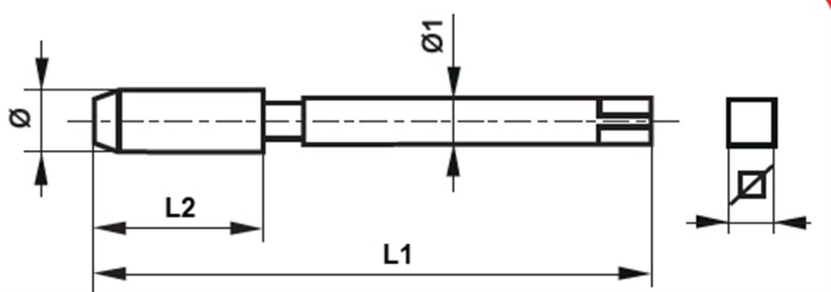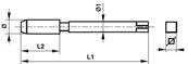 Taraud machine court HSS DIN 352 filetage unifié ANSI B 1.1 Forme D UNC 1/4 x 20filets/pouce Tol. 2B L1: 50mm L2: 19mm Ø1: 6mm Carré4.9mm