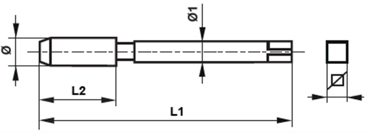 Taraud machine court HSS DIN 352 Whitworth BS 84 Forme D BSW 9/16 x 12 filets/pouce L1: 80mm L2: 30mm Ø1: 11mm Carré: mm