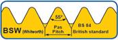 Taraud machine court HSS DIN 352 Whitworth Forme D BSW 9/16 x 12