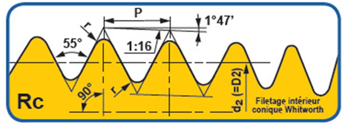 Taraud machine court HSS filetage gaz conique Forme B entrée GUN Filetage intérieur conique BSPT 1.1/2 x 11filets