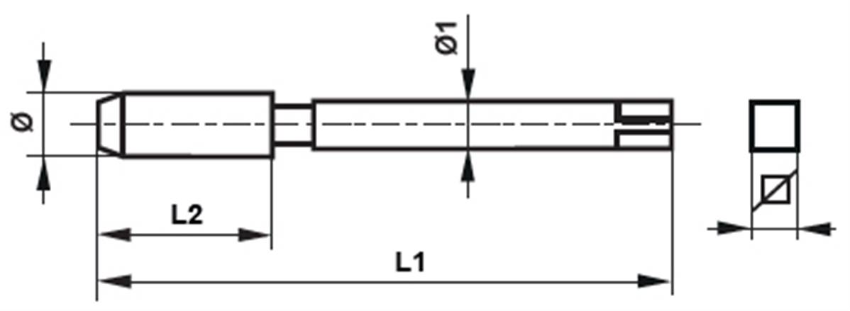 Taraud machine court HSS Forme C Conicité 1:16 National petrol thread NPT 2" x 11.5filets L1: 160mm L2: 44mm Ø1: 36mm Carré: 29mm