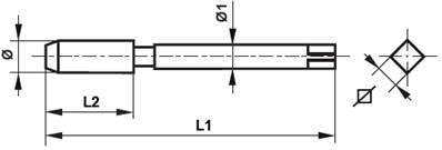 Taraud machine HSS-E(VAPO) Bague couleur blanche Filetage unifié Forme B GUN DIN 371 UNC 5/16 x 18mm L1: 90mm L2: 20mm Ø1:8mm Carré: 6.2mm