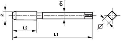 Taraud machine HSS-E(VAPO) Bague couleur blanche Filetage unifié Forme B GUN DIN 371 UNF 5/16 x 18mm L1: 90mm L2: 20mm Ø1: 8mm Carré: 6.2mm