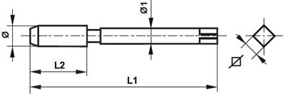 Taraud machine HSS-E(VAPO) Bague couleur blanche Filetage unifié Forme B GUN DIN 376 UNF 7/16 x 14mm L1: 100mm L2: 22mm Ø1: 8mm Carré: mm