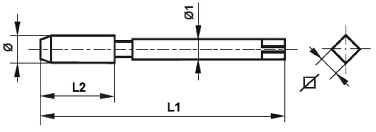 Taraud machine HSS-E(VAPO) Bague couleur blanche Filetage métrique ISO DIN 13 Forme B entrée GUN DIN 371 M 3mm x 0.50mm Tol. ISO2/6H L1: 56mm L2: 11mm Ø1: 3.5mm Carré: 2.7mm