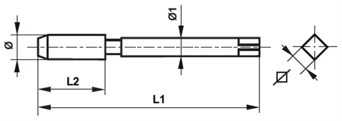 Taraud machine HSS-E (VAPO) Bague couleur blanche Filetage métrique ISO DIN 13 Forme B entrée GUN DIN 376 M 20mm x 2.50mm Tol. ISO2/6H L1: 140mm L2: 34mm Ø1: 16mm Carré: 12mm
